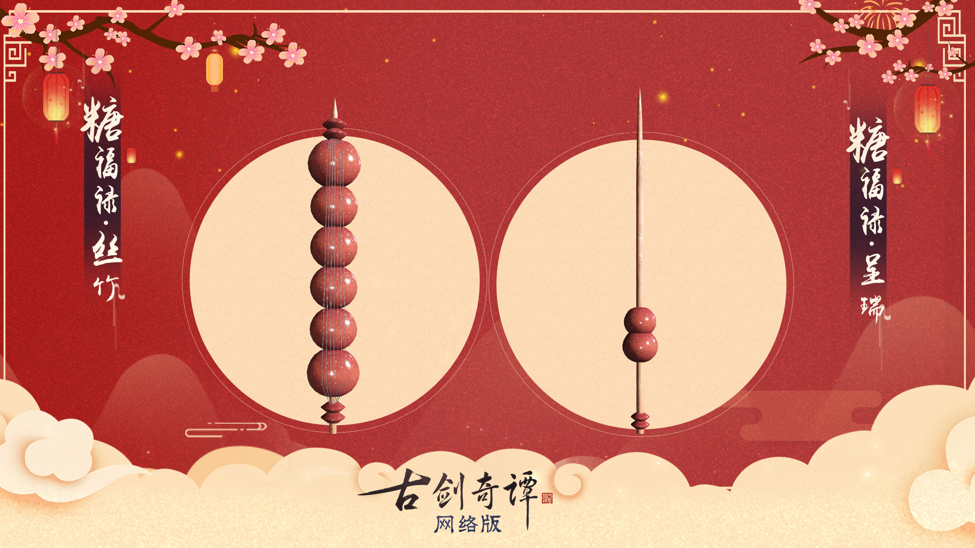 今年春节,糖福禄增加“珑瑛”和“异芳”的武器外观【糖福禄·连稔】和【糖福禄·嘉辰】。