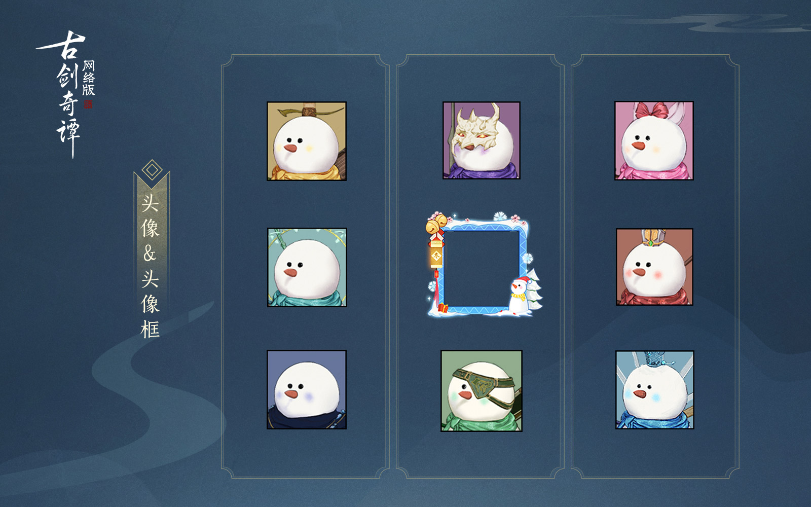 以雪人为原型,融入八大门派的经典元素,换上这一套头像和头像框,在这个冰雪纷飞的季节极为适合。