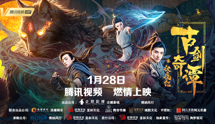 由网元圣唐授权,基于旗下《古剑奇谭》IP改编的仙侠电影《古剑奇谭之伏魔纪》将于2020年1月28日上映,腾讯视频独播。该片由企鹅影视、博纳风行出品,浩瀚娱乐、亚和文化、舞帝传媒、瑞熙文化联合出品,博纳风行、亚和文化承制,亚和文化发行。