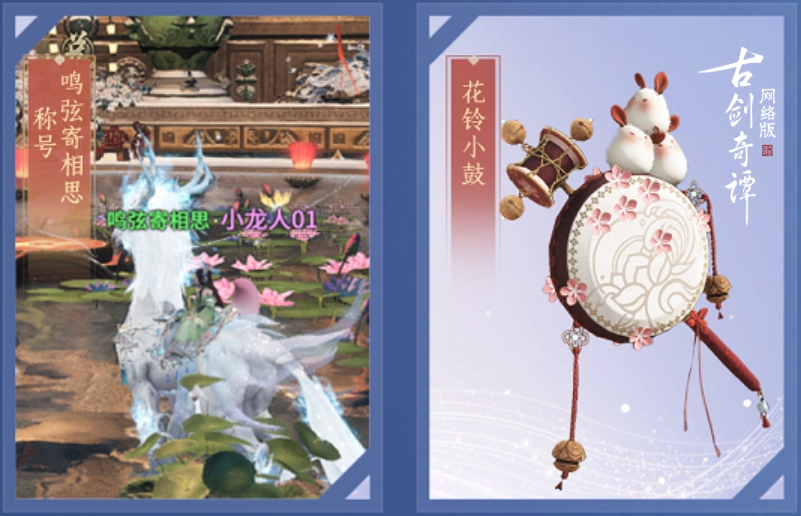 春来心弦动,参与二月主题活动获得的“惜时令”可以兑换包括255装等的精美装备礼盒、代币礼包、666通宝代金券、为君舞荧棒·表情包、炫酷称号“鸣弦寄相思”和附带特效动作的精美挂饰“花铃小鼓”。