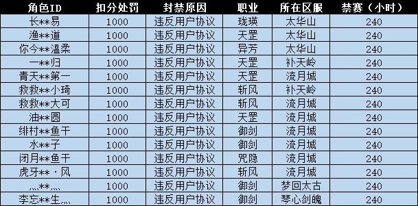 为了保证正常游戏仙家弟子的利益以及游戏体验,维护游戏的公平性,小龙人将对以下情节较为严重的仙家弟子,进行扣除铭锋论剑积分及禁赛的处罚,之后如果再犯将给予更严厉的惩处!