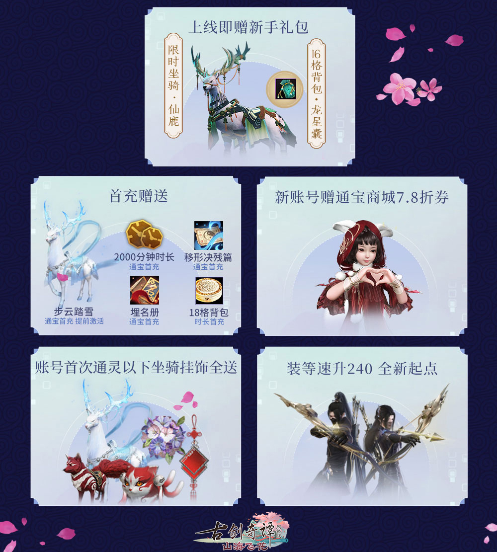 每一位加入古剑世界的新进弟子可以安心地成长,以下福利助你全面修行。