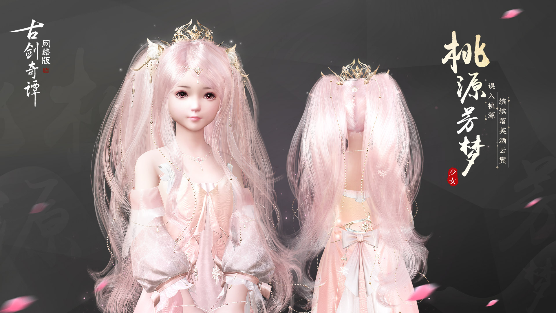 本次上架商城的两款发型分别是粉色系“桃源芳梦”;金色系“枕星繁梦”各具仙姿。