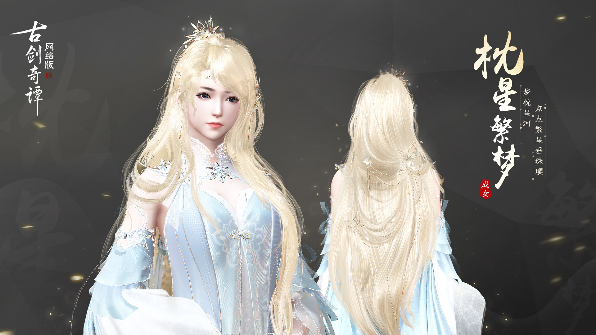 金发“枕星繁梦”,发色金耀如芒,光华流转,仿佛九天星辰下凡间,一枕清梦压星河,该发型上架积分商城。