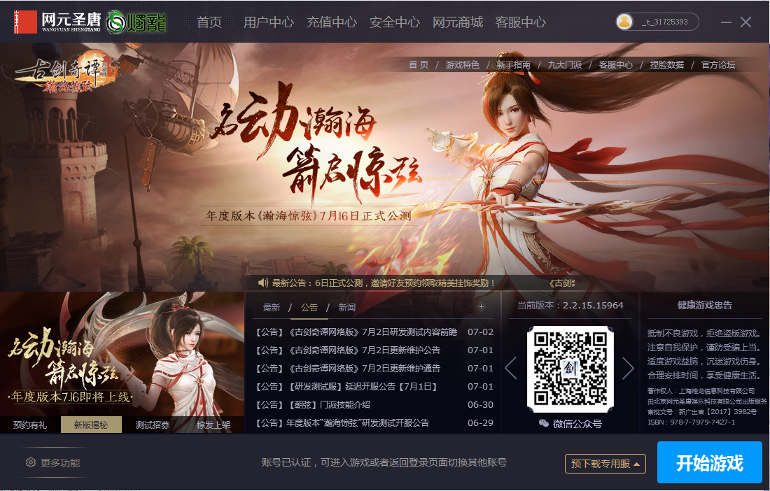 《古剑奇谭网络版》“瀚海惊弦”年度版本7月16日将正式上线,届时客户端将有较多资源更新,为了方便大家提前更新下载,特决定7月6日开启“瀚海惊弦”年度版本【预下载】!