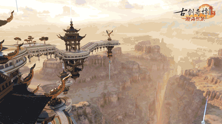 古剑世界一直向着打造无缝地图和沙盒世界前进,在未来我们希望将自由沙盒玩法覆盖在整个修仙世界。年度版本荒狼原就是一个很好的尝试,在这个有着3000个足球场大小的超大地图里,仙家弟子可以使用飞行坐骑自由翱翔,在没有固定任务引导之下,一步一惊喜,探索潜藏起来的仙缘事件。比如,烈日行走偶遇海市蜃楼,闹市摆摊被人撵走等等。