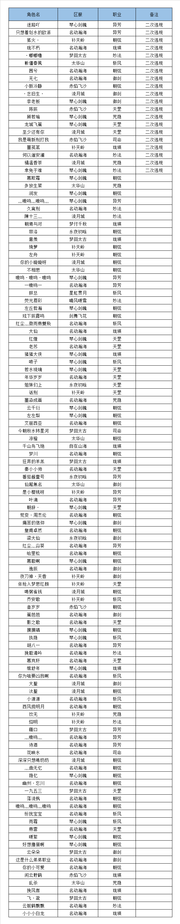 本次,小龙人将对以下违规情节较为严重的仙家弟子,处以【禁入团队秘境14天】的处罚!其中二次违规的玩家将会处以【禁入团队秘境28天】的处罚!