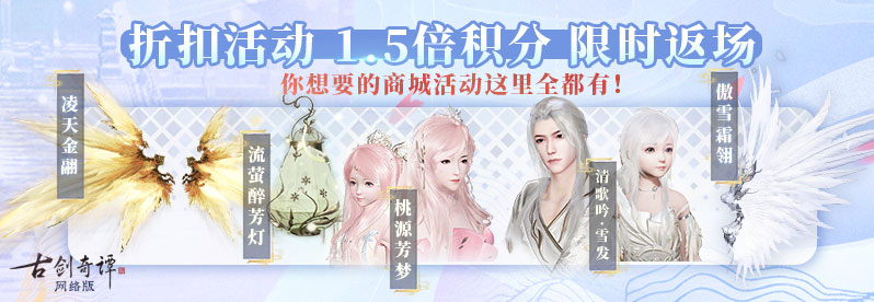 12月12日00:00至12月24日6:00期间登录就送888通宝专用代金券,修容焕新颜!更有1.5倍积分、往期热销商品折扣、人气商品返场等海量福利活动,精彩不容错过!不要忘了关注古剑奇谭网络版官方网站、微博、微信以及B站账号,第一时间获取更多有关新资料片的爆料讯息!