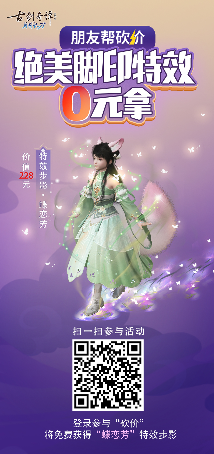 价值228元特效步影【蝶恋芳】,邀请2-4位好友,砍价成功0元送!