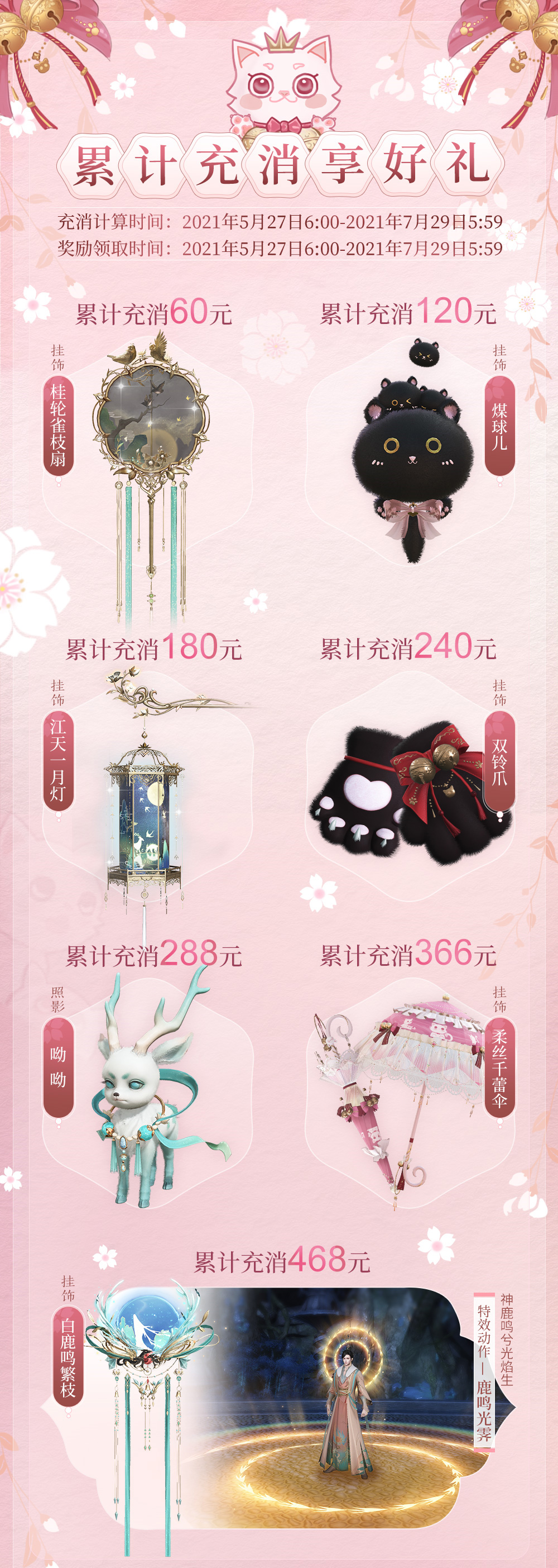 累计充值468元可获:特效挂饰·月【白鹿鸣繁枝】。
