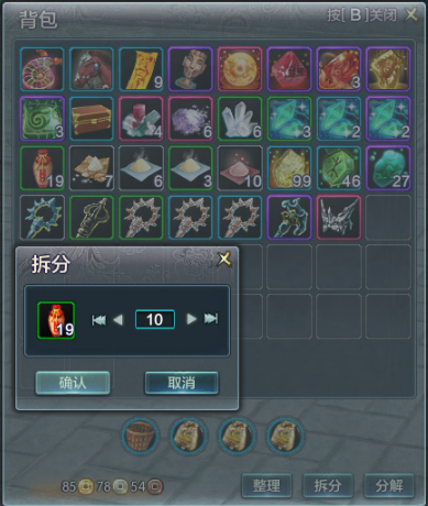 物品拆分功能可以将堆叠在一起的同类物品进行拆分。