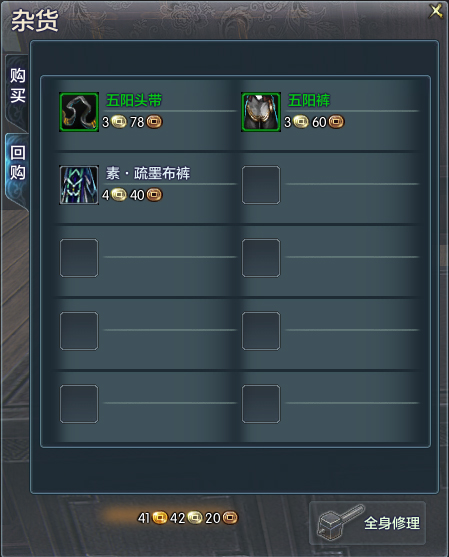 如果重要物品不小心卖给商人,不要担心,选择回购即可原价退回。